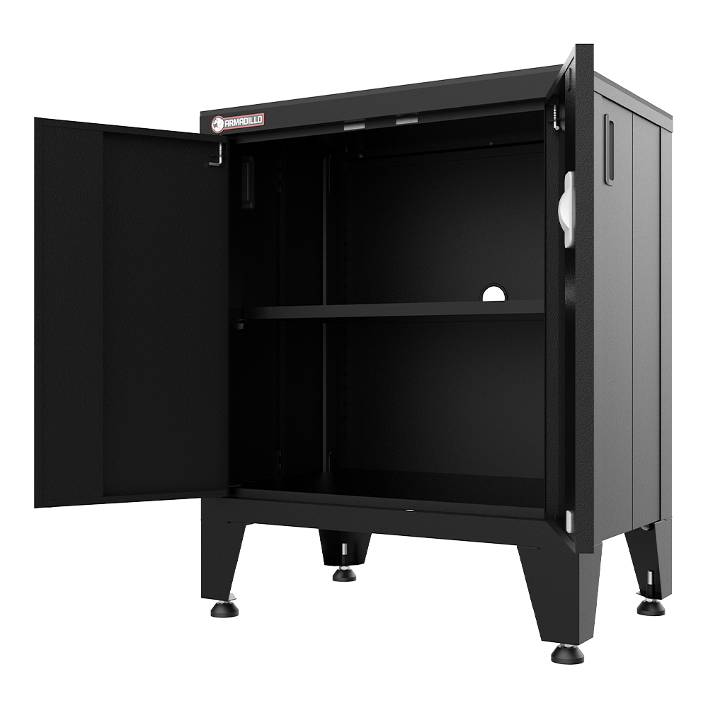 Designed to make organization simple for garages and workshops, the Armadillo 2-Door Cabinet is made with heavy-duty 22-gauge steel for strength. The scratch and stain-resistant powder-coat paint finish protects the cabinets from everyday heavy use. Adjustable steel shelves give you the flexibility to store items of all sizes. Fully lockable doors with visual lock-unlock indicators ensure that your gear stays safe.
