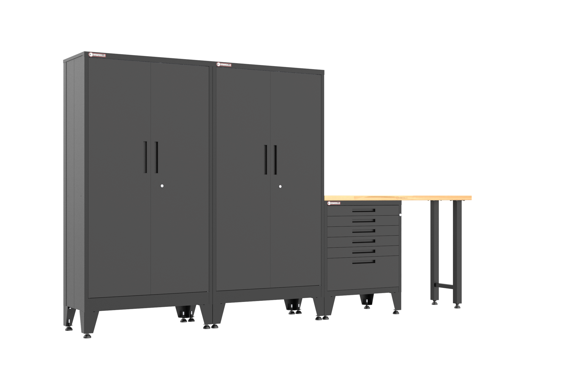 Upgrade your garage with this 4-piece heavy-duty garage storage system, crafted from durable, scratch-resistant powder coated steel for long-lasting performance, and engineered for fast and easy assembly. Whether you're a DIY enthusiast or a professional, this versatile system offers flexible configurations to suit your storage needs. Easily organize your tools, equipment, and supplies with these versatile cabinets, spacious drawers, and integrated workbench functionality. Perfect for enhancing garage organization, improving tool storage, and creating a productive workspace, this system is built for serious performance.