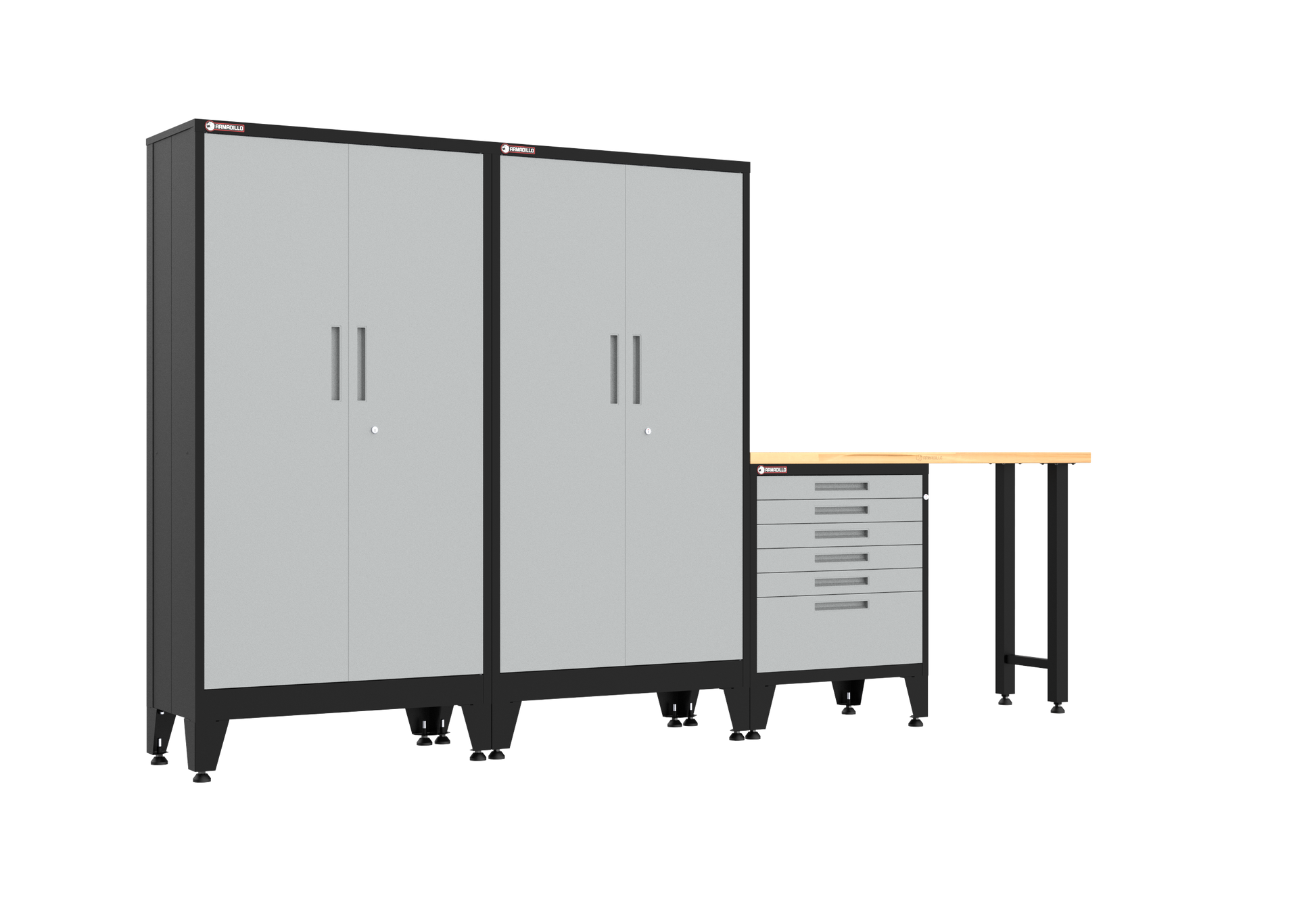 Upgrade your garage with this 4-piece heavy-duty garage storage system, crafted from durable, scratch-resistant powder coated steel for long-lasting performance, and engineered for fast and easy assembly. Whether you're a DIY enthusiast or a professional, this versatile system offers flexible configurations to suit your storage needs. Easily organize your tools, equipment, and supplies with these versatile cabinets, spacious drawers, and integrated workbench functionality. Perfect for enhancing garage organization, improving tool storage, and creating a productive workspace, this system is built for serious performance.