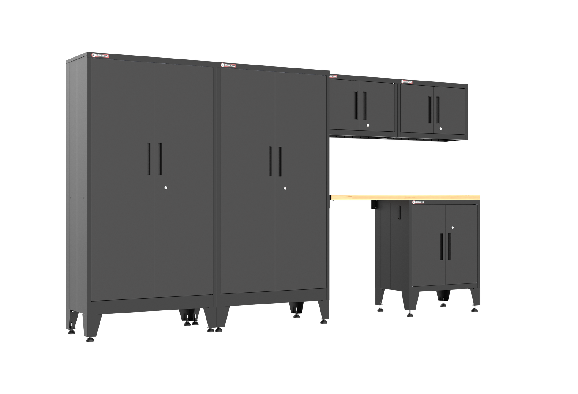 Upgrade your garage with this 6-piece heavy-duty garage storage system, crafted from durable, scratch-resistant powder coated steel for long-lasting performance, and engineered for fast and easy assembly. Whether you're a DIY enthusiast or a professional, this versatile system offers flexible configurations to suit your storage needs. Easily organize your tools, equipment, and supplies with these versatile cabinets, spacious drawers, and integrated workbench functionality. Perfect for enhancing garage organization, improving tool storage, and creating a productive workspace, this system is built for serious performance.