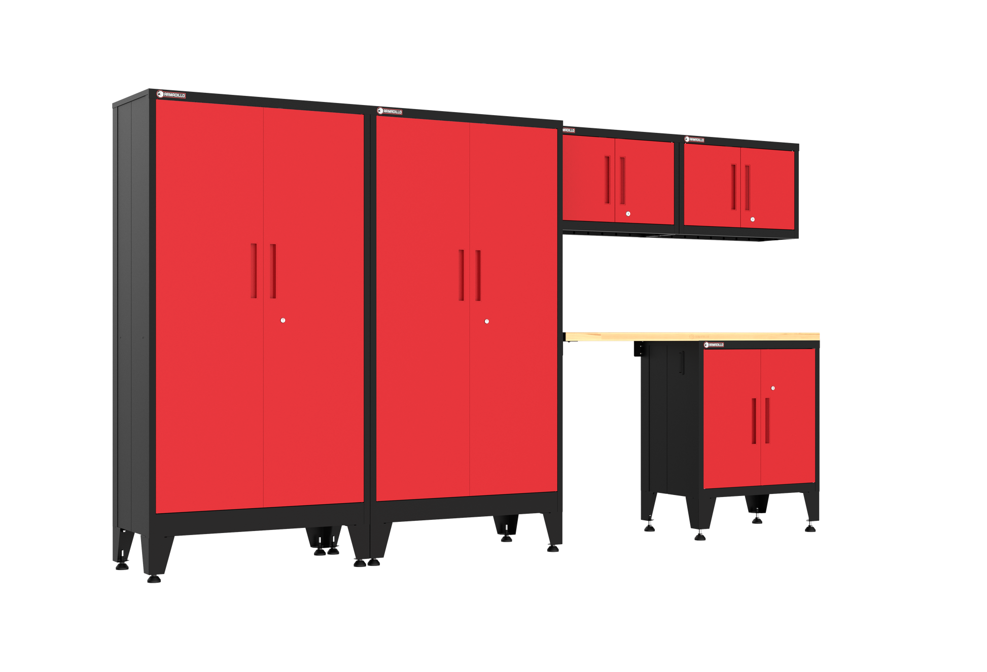 6-Piece Garage Cabinet Storage and Organization Set with Levelers in Red